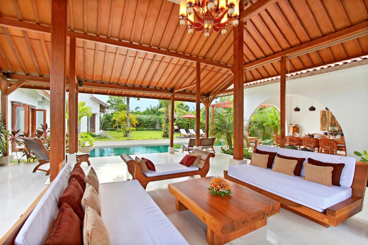 Five-Bedroom Villa with Private Pool. This 5-bedroom villa features a private patio, fully-equipped kitchen and a living and dining area that opens out to the pool. Each bedroom has mosquito nets, flat-screen satellite TV and a semi open bathroom with shower facilities.