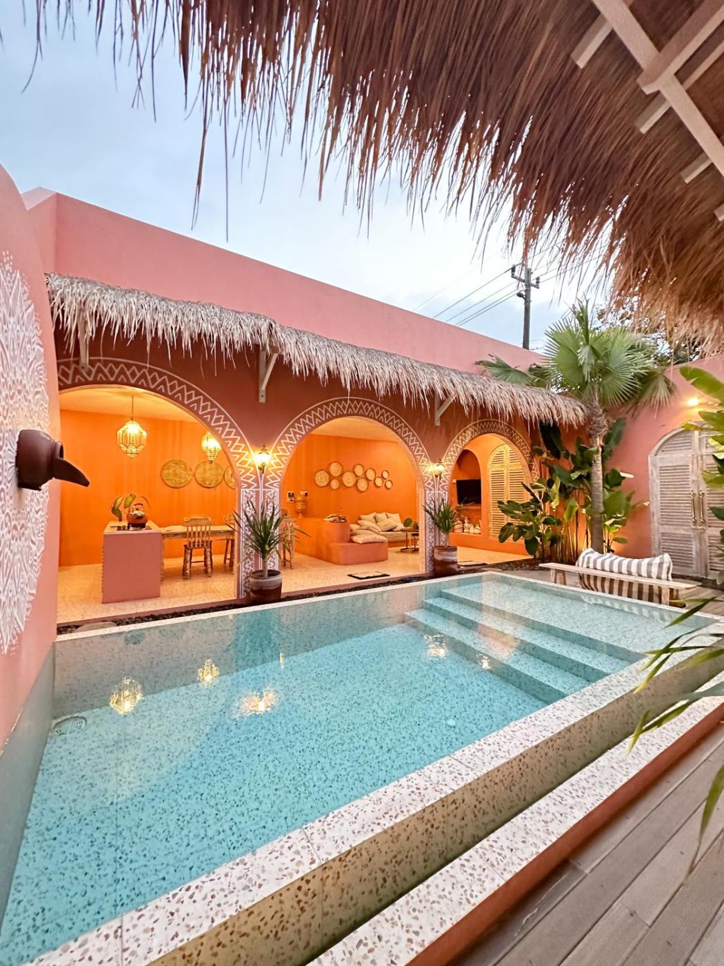 Three-Bedroom Villa. The private pool is the standout feature of this villa. This air-conditioned villa features 1 living room, 3 separate bedrooms and 3 bathrooms with a shower. Guests will find a refrigerator and kitchenware in the kitchen. The villa also comes with a barbecue. The villa features a tea and coffee maker, a seating area, a dining area, a flat-screen TV with streaming services, as well as garden views. The unit has 3 beds.