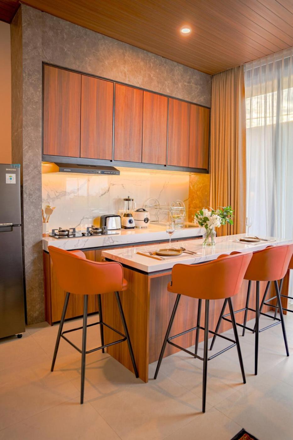 Two-Bedroom Villa. This villa features a private pool. Featuring a private entrance, this air-conditioned villa is comprised of 1 living room, 2 separate bedrooms and 2 bathrooms with a bath or a shower and a bidet. In the well-fitted kitchen, guests will find a stovetop, a refrigerator, a microwave and a toaster. Boasting a terrace with pool views, this villa also offers a dining area and a flat-screen TV. The unit offers 2 beds.