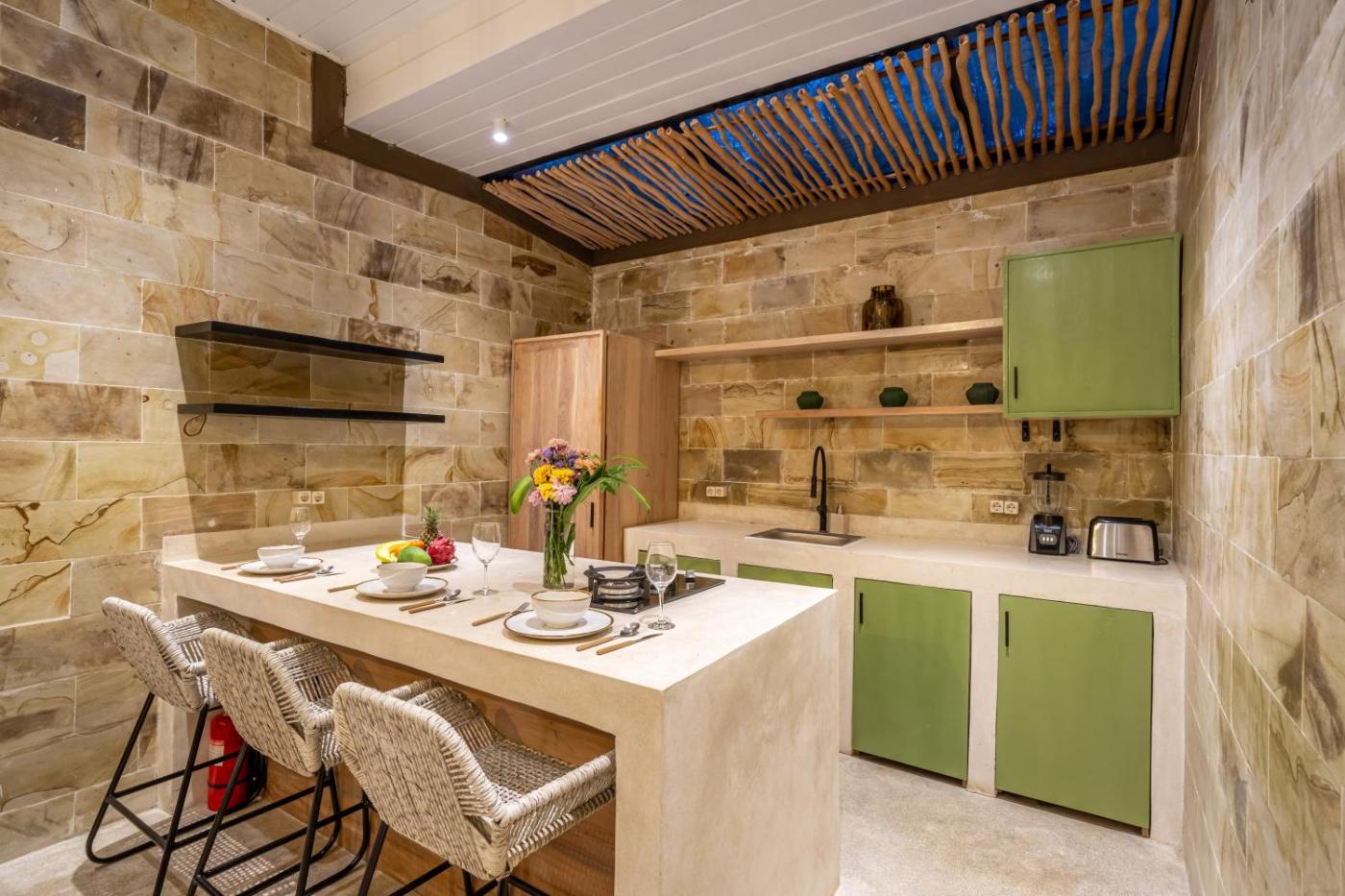 Villa. The pool with a view is the standout feature of this villa. Boasting a private entrance, this air-conditioned villa comes with a kitchen, 2 bedrooms and 2 bathrooms with a walk-in shower and a bath. Guests will find a stovetop, a refrigerator, kitchenware and a microwave in the well-equipped kitchen. The villa also includes a barbecue. Featuring a terrace with garden views, this villa also features soundproof walls and a flat-screen TV with streaming services. The unit has 2 beds.