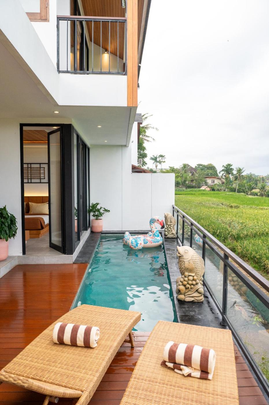 Two-Bedroom Villa. Guests will have a special experience as this villa provides a pool with a view. Boasting a private entrance, this air-conditioned villa includes a kitchen, 2 bedrooms and 2 bathrooms with a bath and a shower. Guests can make meals in the kitchen that has a stovetop, a refrigerator, kitchenware and a microwave. Featuring a terrace with garden views, this villa also offers a tea and coffee maker and a flat-screen TV with streaming services. The unit has 2 beds.