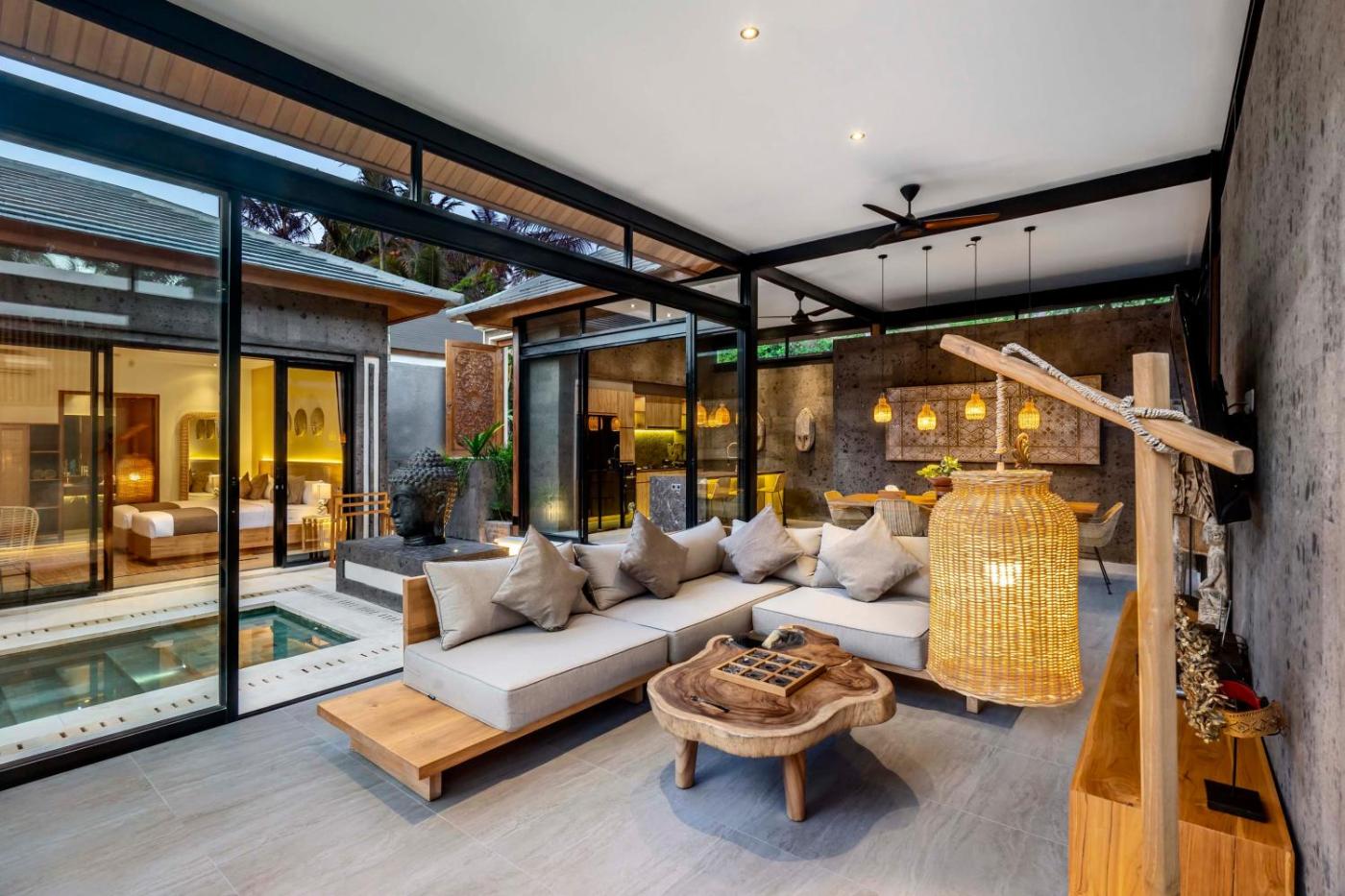 Three-Bedroom Villa. Guests will have a special experience as this villa features a pool with a view. This spacious villa is comprised of 1 living room, 3 separate bedrooms and 3 bathrooms with a shower and free toiletries. In the well-fitted kitchen, guests will find a stovetop, a refrigerator, kitchenware and an oven. The air-conditioned villa offers a flat-screen TV, a private entrance, a seating area, a dining area as well as garden views. The unit offers 3 beds.
